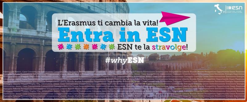 ESN è la più grande associazione studentesca europea di volontari, che offre un supporto agli studenti stranieri che partecipano ad una programma di mobilità studentesca internazionale (Erasmus+, Erasmus Mundus, Overseas ad altro), e che rappresenta un valido punto di riferimento per studenti Incoming e Outgoing.